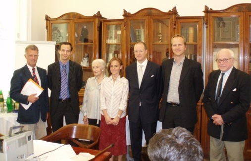v.l.n.r. Präs. Prof. Dr. J. Schwarzmeier, Dr. G. Widhalm, Frau Dr. Barbara Fellinger, Frau Dr. M. G. Luciani, Dr. P. Dubsky für Prof. Dr. A. Stift, Dr. M. Steurer, Vizepräs. Dr. O. Hartig
